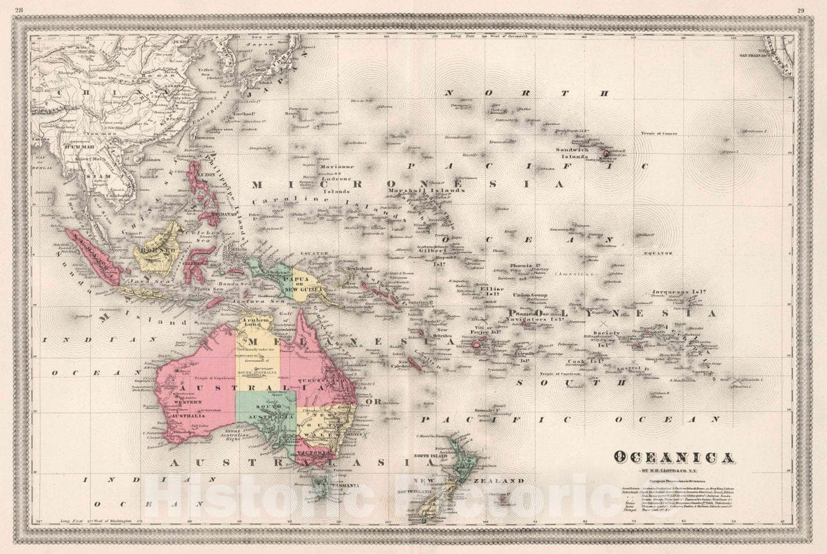 Historic Map : Oceanica Oceanica. by H. H. Lloyd & Co. New York. Lloyd's Handy Atlas, 1874 Atlas , Vintage Wall Art