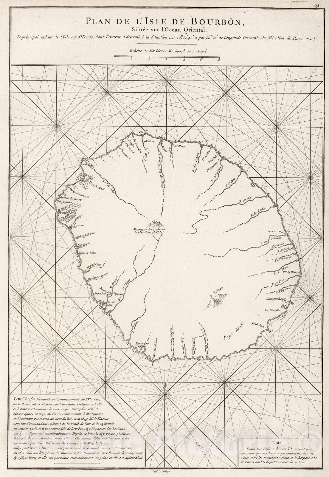 Historic Map : Plan de L'Isle de de Bourbon, situ?ee sur l'Ocean Oriental, 1810, Vintage Wall Decor