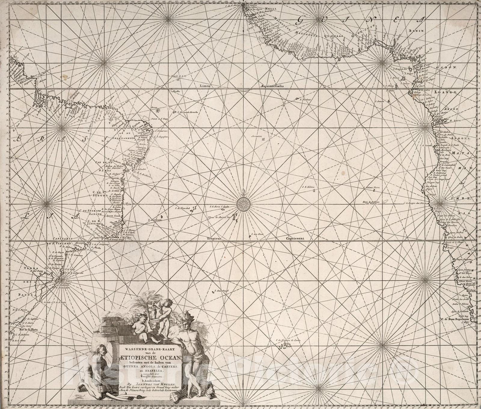 • .Historic Map : Wassende-Grade-Kaart van de Aetiopische Ocean., 1680, Vintage Wall Art