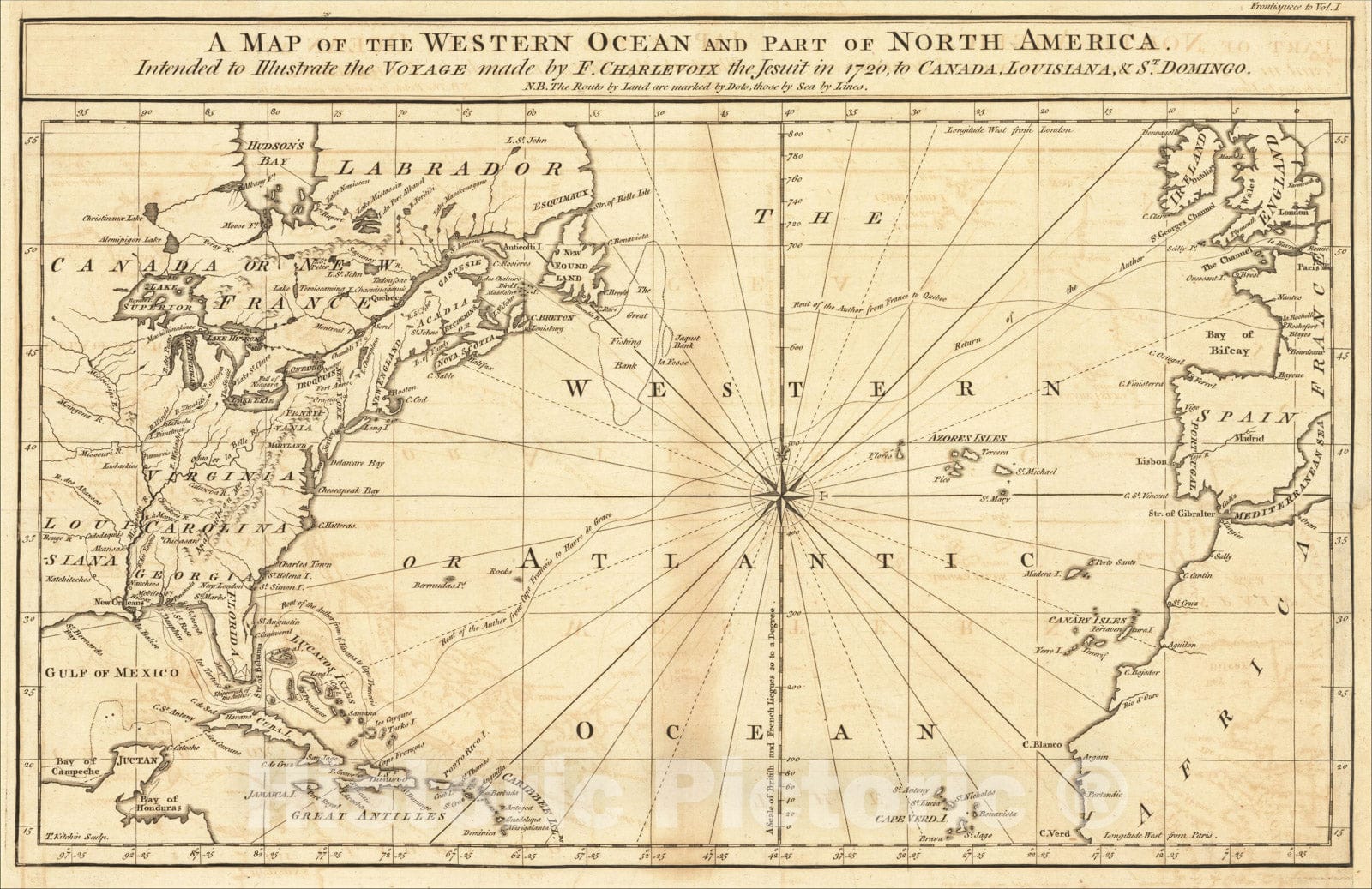 A Map of the Western Ocean and Part of North America, 1761, Pierre Francois Xavier de Charlevoix