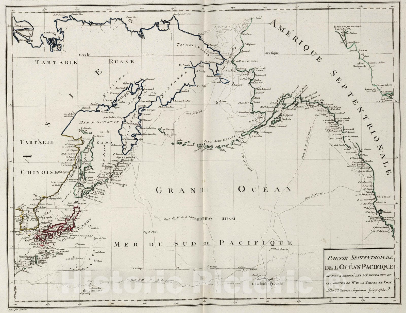 XXVI. Partie Septentrionale de Ocean l'Pacifique. | Geographie Mathematique, Physique et Politique de Toutes les Parties du Monde, Publiee par Edme Mentille, de l'Institute national, Malte Brun, Geographe Danois. Atlas. Compose de 45 Cartes, gravees par J.-B.-P. Tardieu aine, sur les dessins de J.-B. Poirson, ingenieur-geographe, revues et corrigees d'apres les meilliurs autorite, par Edme Mentelle ... Paris, Chez Henry Tardieum Imprimeur-Libraire ... (Chez) Laporte. An XIII. 1804. | An atlas of 45 maps with numerous unusual additional maps from various sources and dates bound in. Additional maps have pages numbers labeled "... bis ...". Most have outline color. 1804 assigned to any undated sheet. Relief shown by sketches.