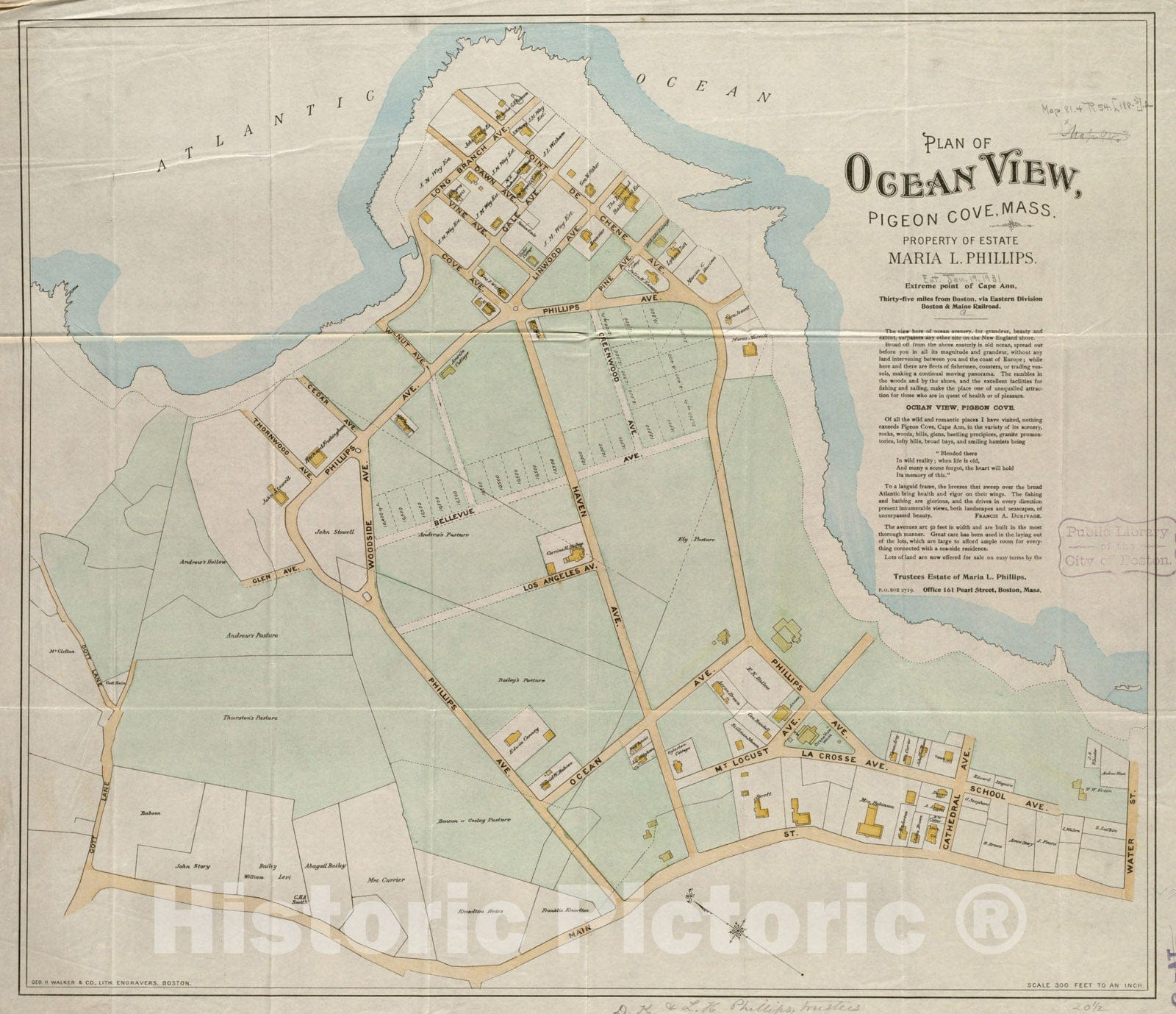 Historical Map, 1880-1889 Plan of Ocean View, Pigeon Cove, Mass, Vintage Wall Art