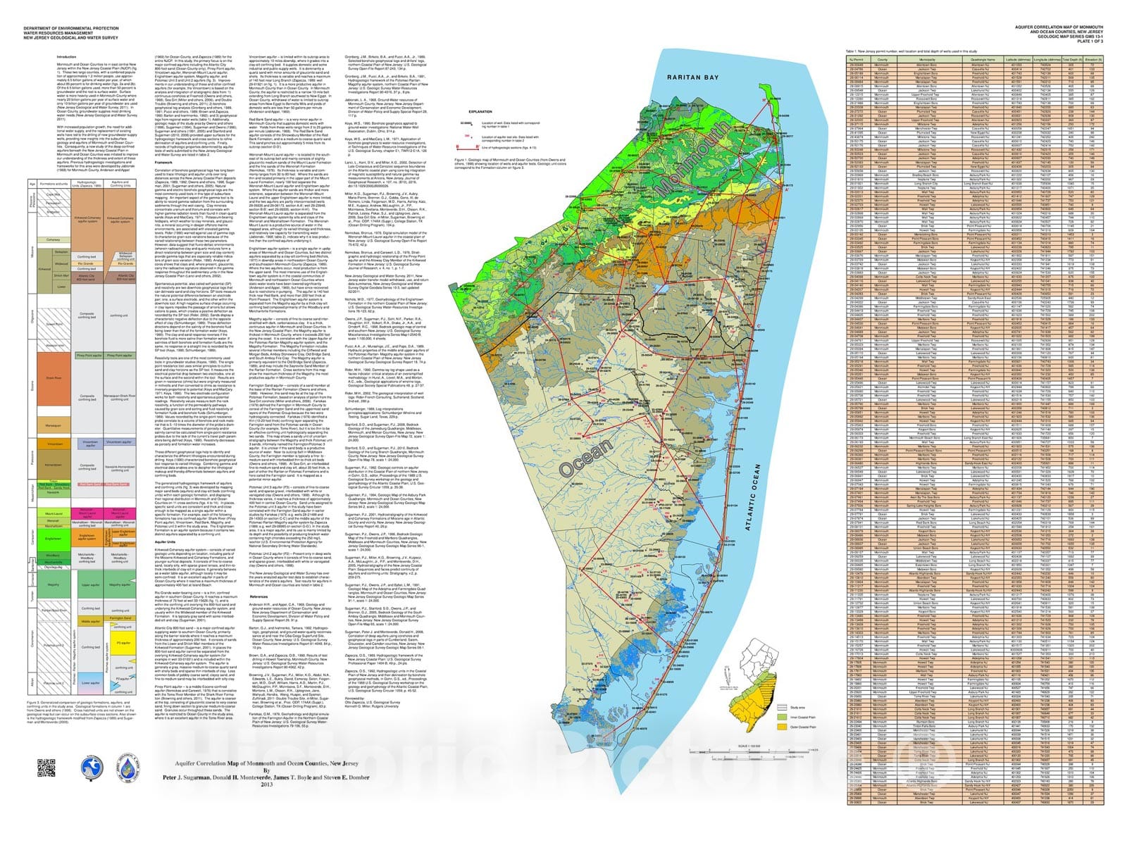 Map : Aquifer correlation map of Monmouth and Ocean counties, New Jersey, 2013 Cartography Wall Art :