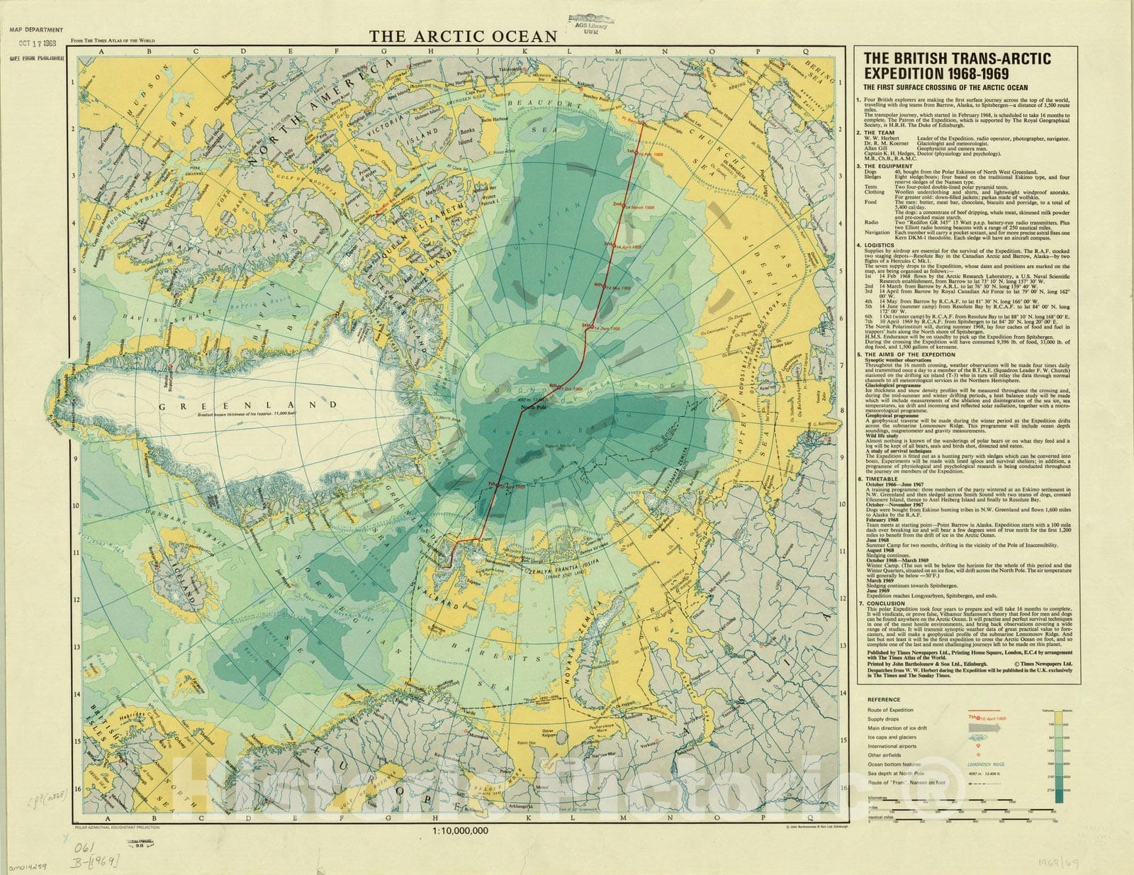 Map : Arctic region 1969, The Arctic Ocean , Antique Vintage Reproduction