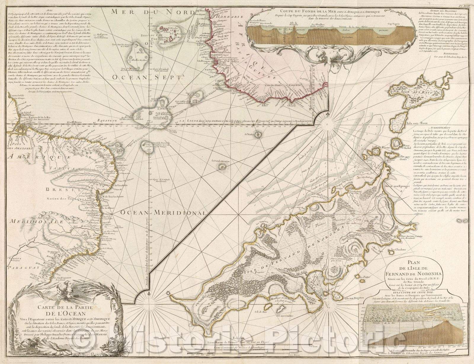 Historic Map : Carte de la Partie de l'Ocean Vers l'Equateur entre les Cotes d'Afrique et d'Amerique ou la Situation des Isles, Bancs, et Vigies, 1757 , Vintage Wall Art