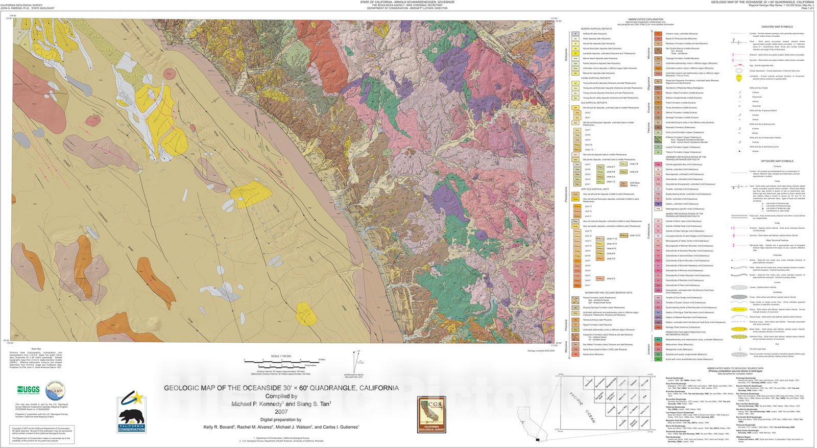 Map : Geologic map of the Oceanside 30x60-minute quadrangle, California, 2007 Cartography Wall Art :