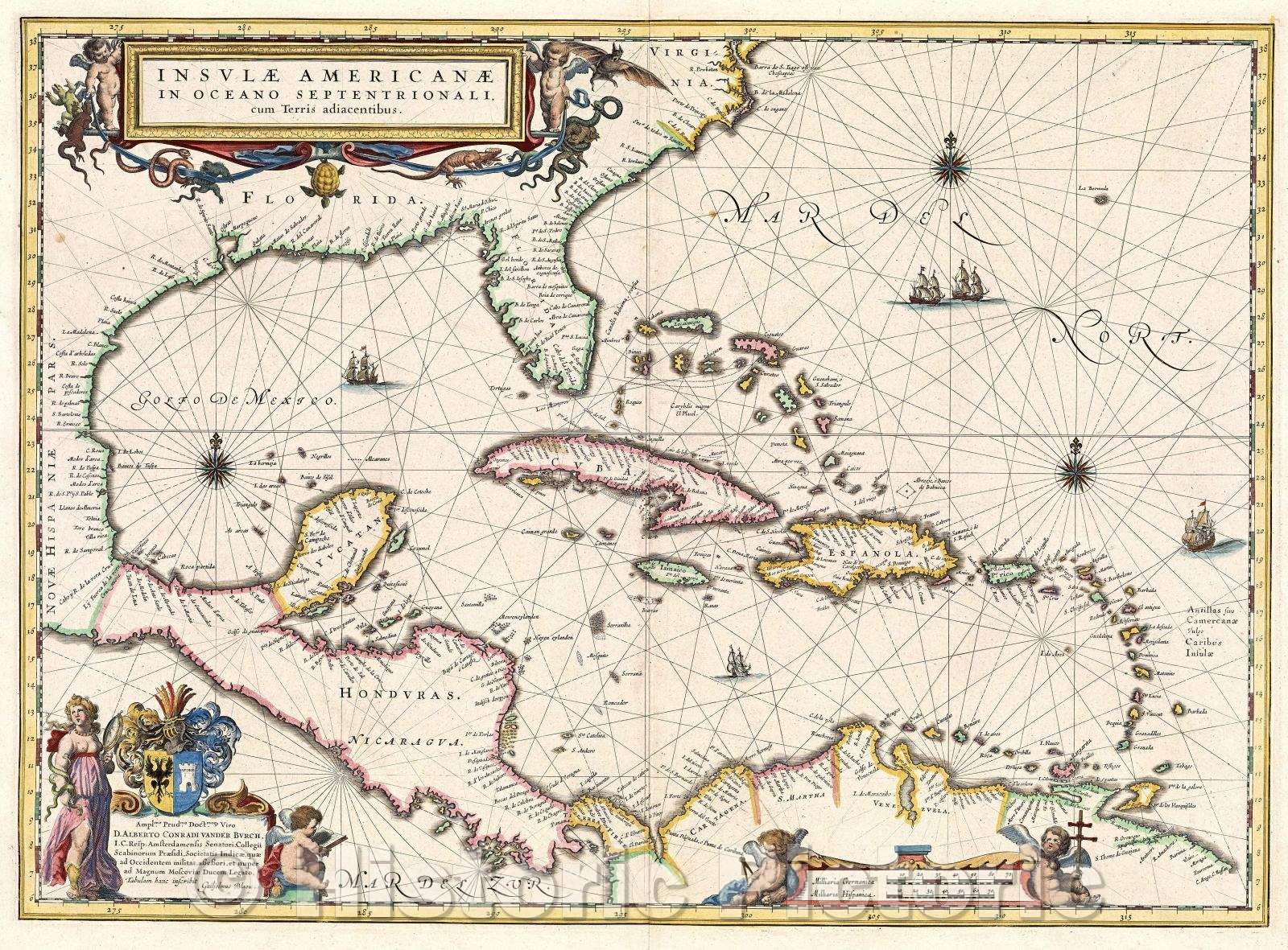 Historic Map : Insulæ Americanæ in oceano septentrionali cum terris adiacentibus, c. 1647 , Vintage Wall Art