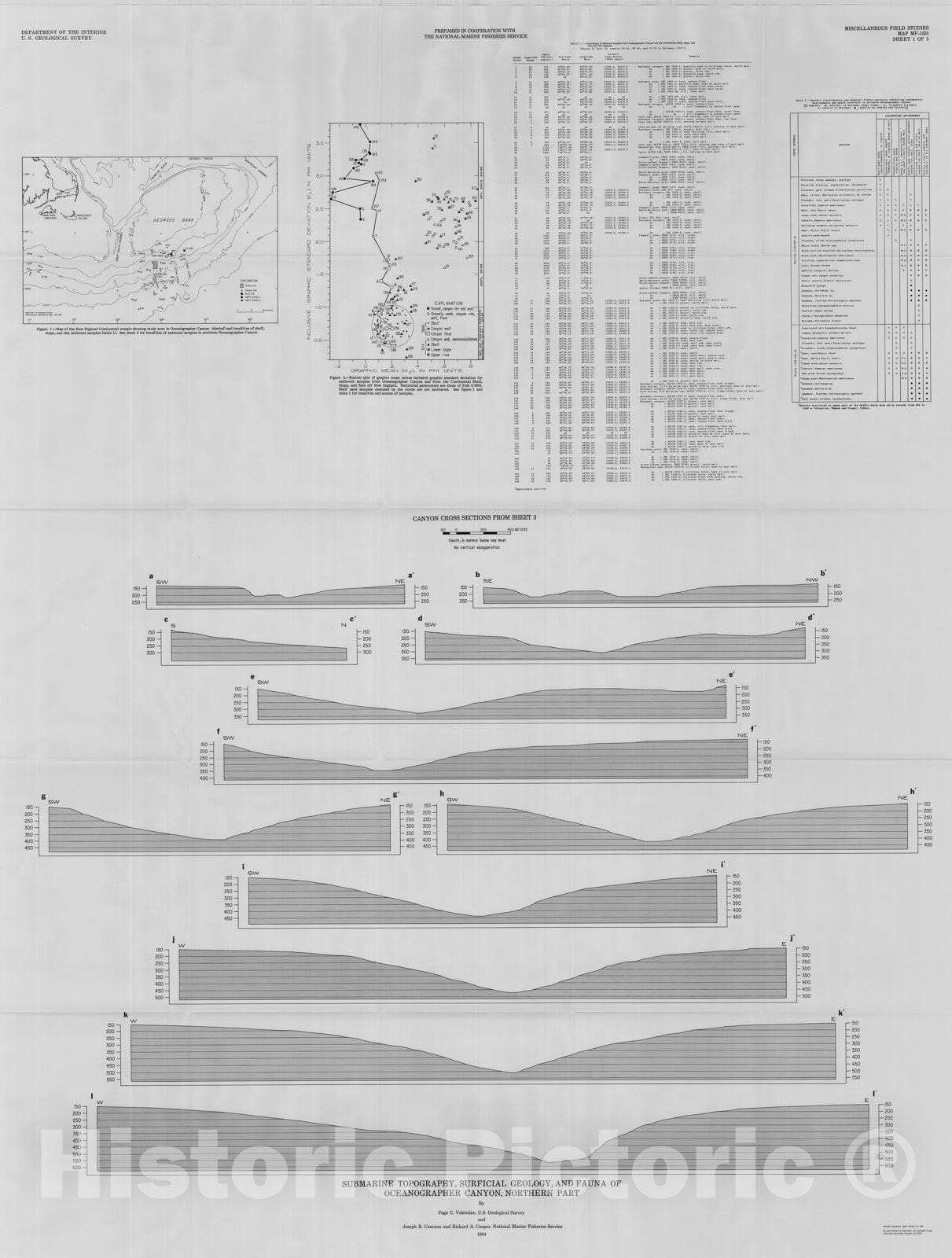 Map : Submarine topography, surficial geology, and fauna of Oceanographer Canyon, northern part, 1984 Cartography Wall Art :
