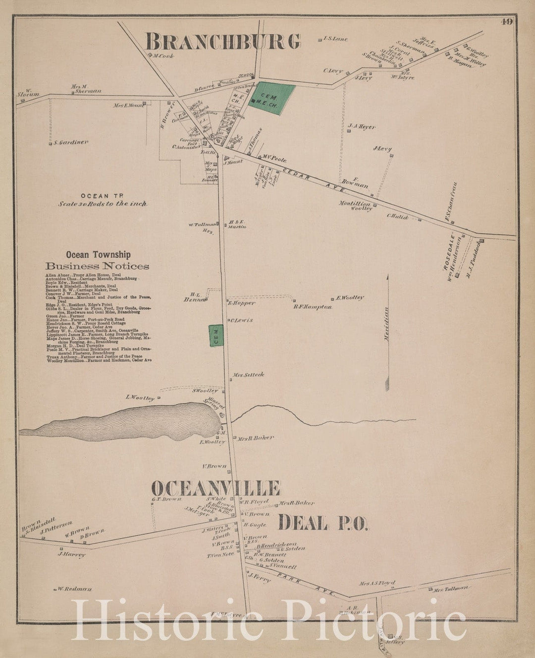 Historic 1873 Map - Branchburg [Village]; Ocean Township Business Notices; Oceanvi - Vintage Wall Art