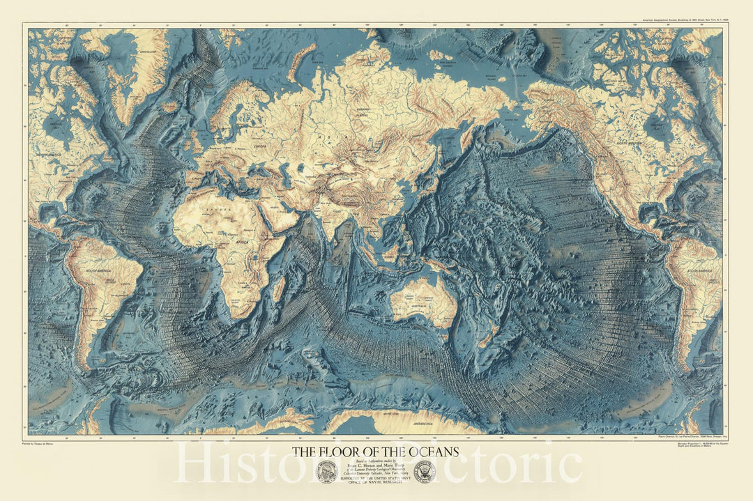 Map : World 1972, The floor of the oceans , Antique Vintage Reproduction