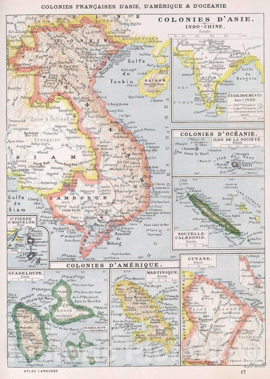 Historic Map - World Atlas Map, Colonies Francaises d'Asie, d'Amerique & d'Oceanie. 1900 - Vintage Wall Art
