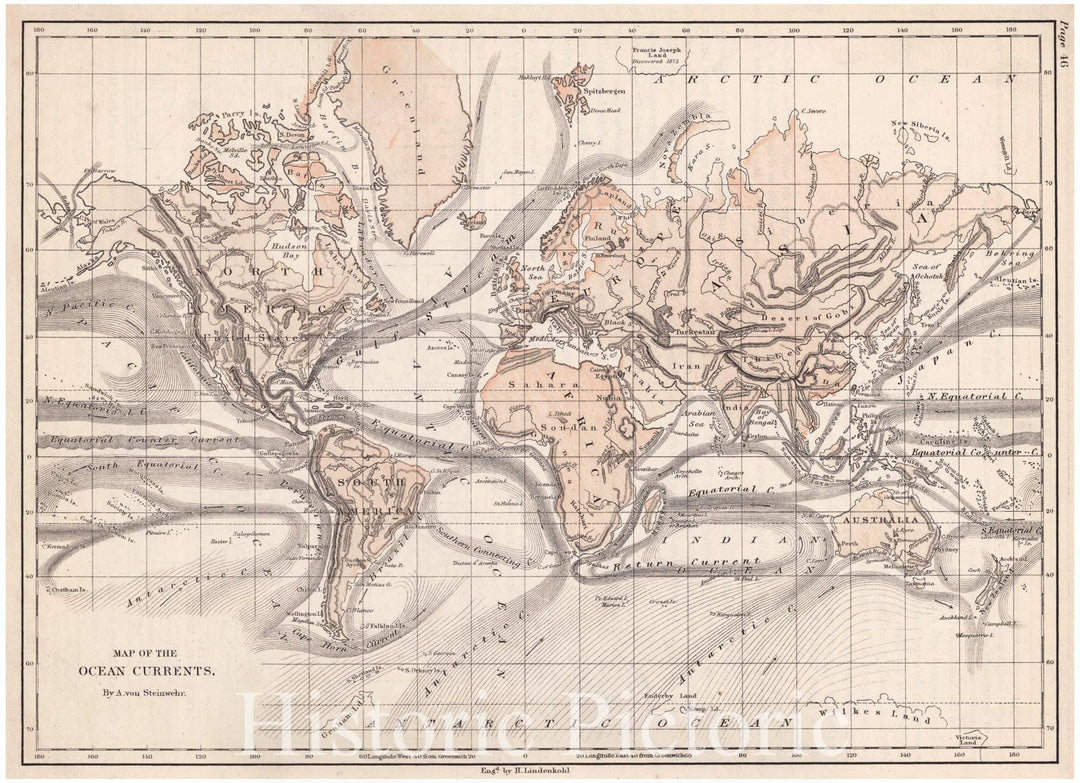 Historic Map : 1872 Map of the Ocean Currents : Vintage Wall Art