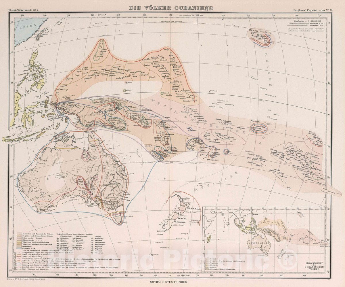 • Historic Map : Oceania Die Volker Oceaniens. Entw. v. Dr. G. Gerland,1885, Ausg. 1886, 1886 Atlas , Vintage Wall Art