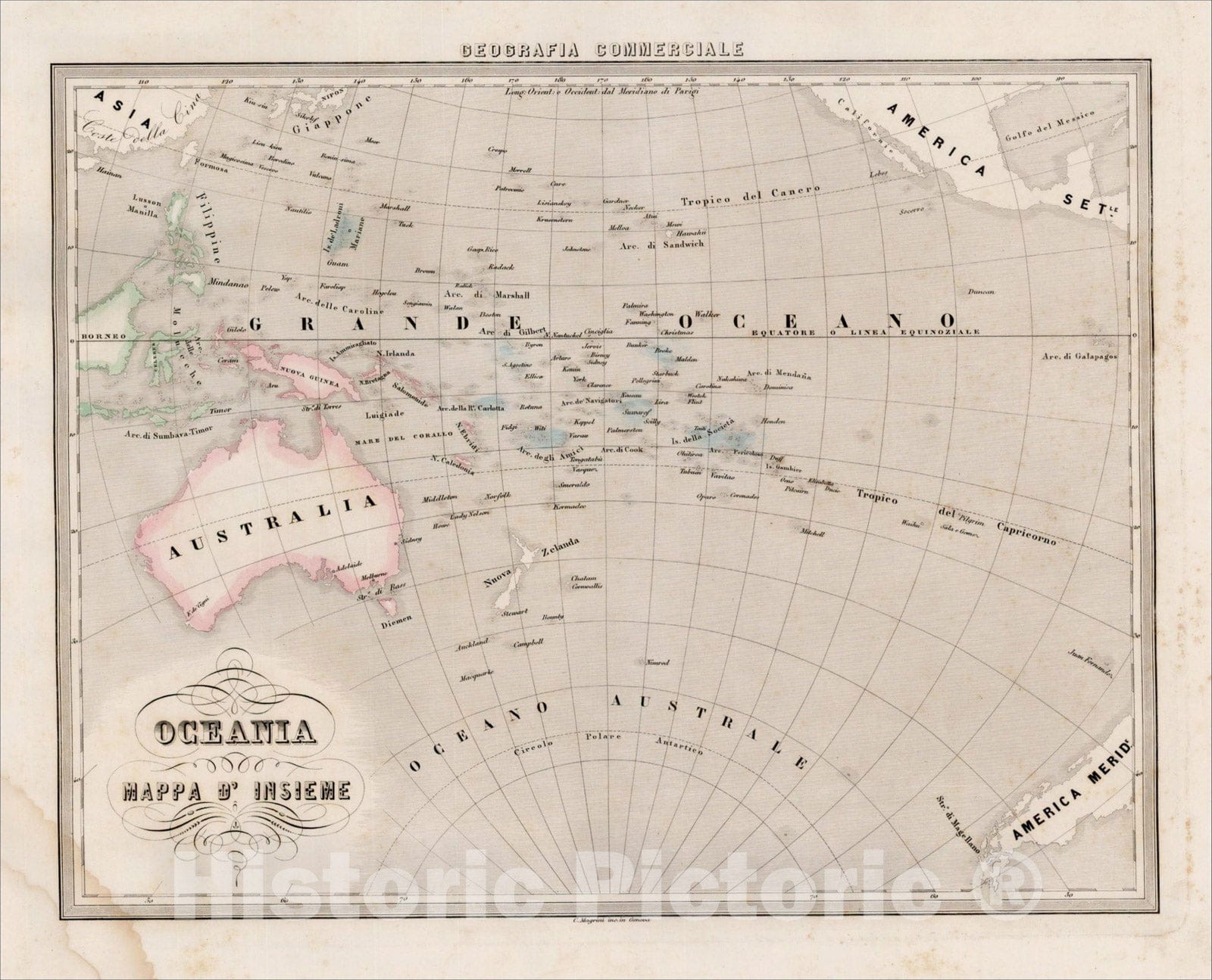 Historic Map : Oceania Mappa D'Insieme, c1855, Francesco Marmocchi, Vintage Wall Art