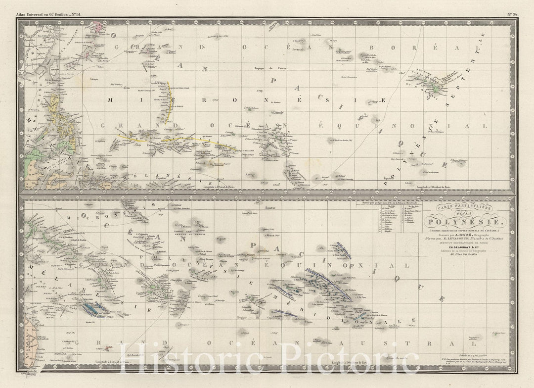 Historic Map : New Caledonia; French Polynesia; Marianas; Marshall Islands, Hawaii, Oceania, Pacific 1875 La Polynesie. , Vintage Wall Art