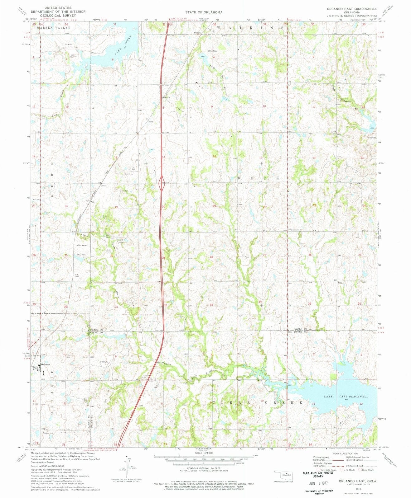 1974 Orlando East, OK - Oklahoma - USGS Topographic Map
