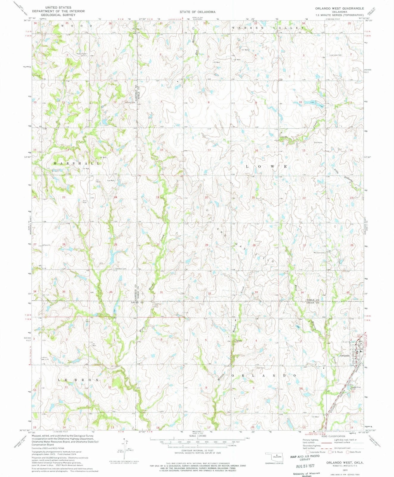 1974 Orlando West, OK - Oklahoma - USGS Topographic Map