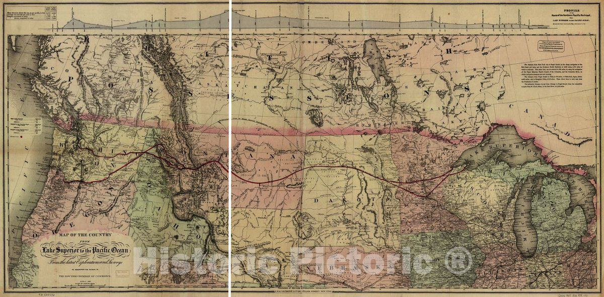 • .Historic 1868 Map - Map of The Country from Lake Superior to The Pacific Ocean. from The Latest explorations and surveys to accompany The Report of The New York Chamber of Commerce