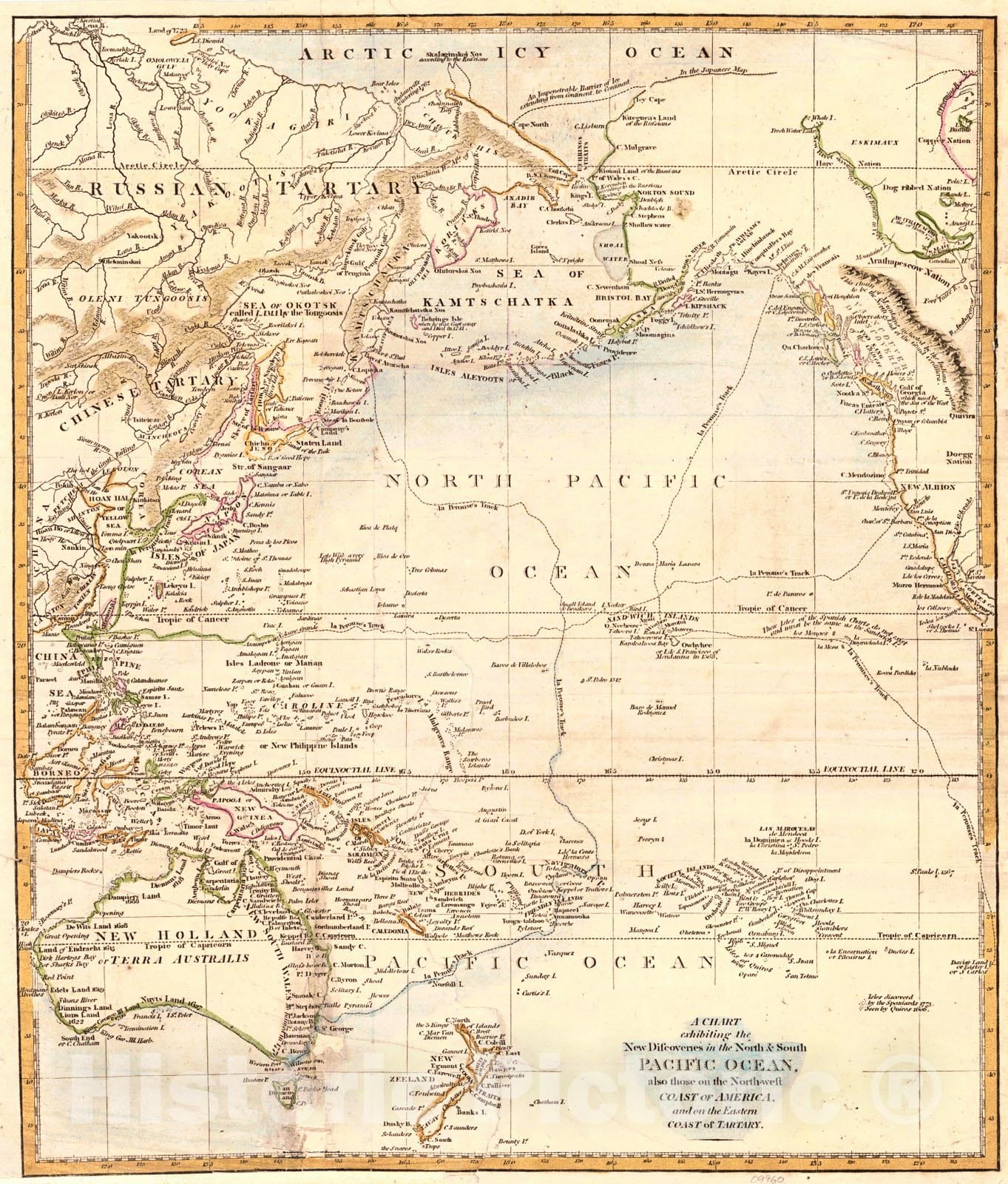 Historic Map : 1790 A Chart of New Discoveries in the North & South Pacific Ocean, also those on the North-west Coast of America, and on the Eastern Coast of Tartory : Vintage Wall Art