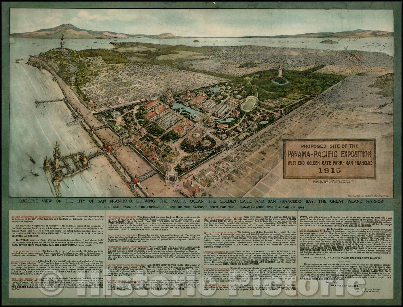 Historic Map - Birdseye View of the City of San Francisco, Showing The Pacific Ocean, The Golden Gate, and San Francisco Bay, The Great Inland Harbor, 1910 - Vintage Wall Art