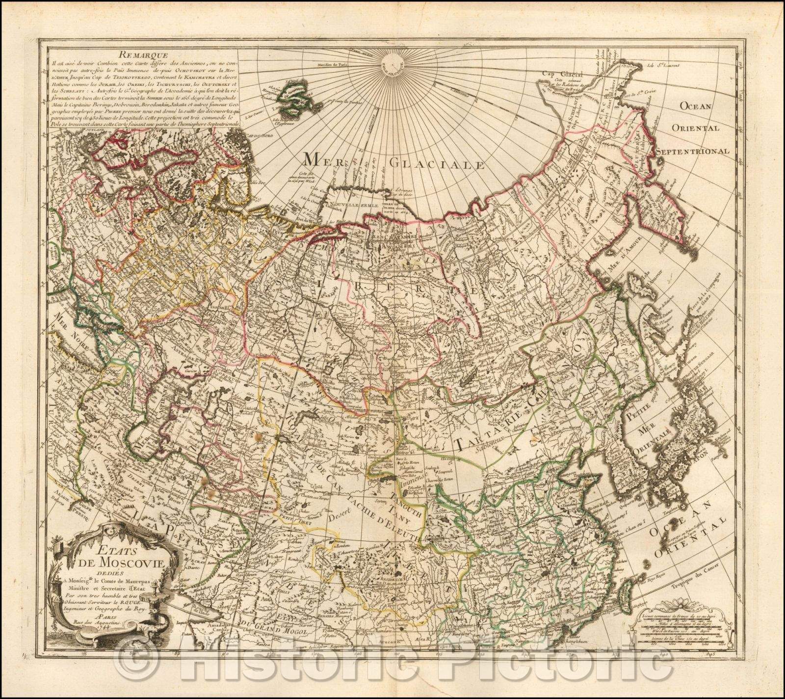 Historic Map - Etats de Moscovie Dedies A. Monseigne le Comte de Maurepas/Map of Russia, extending from the Baltic to the Pacific Ocean, 1744 - Vintage Wall Art