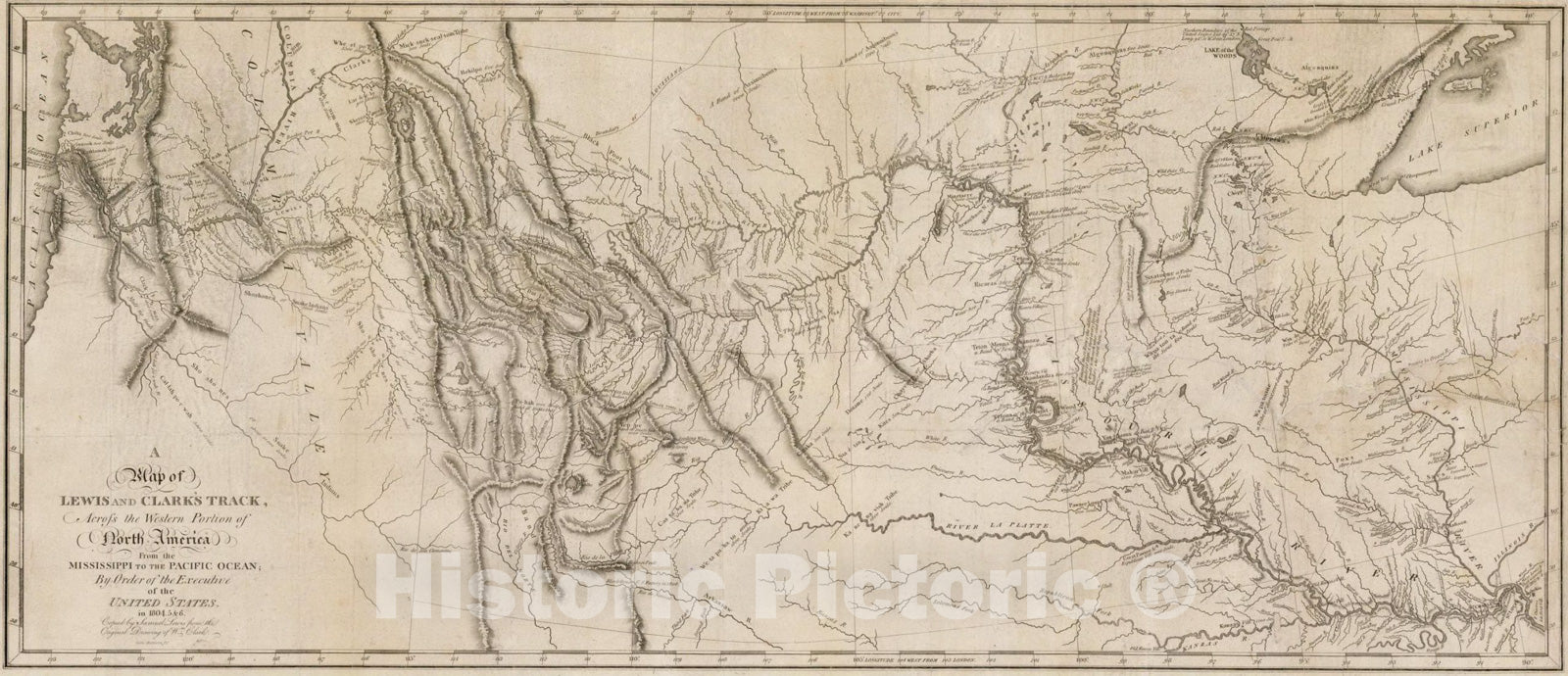 Historic Map : A Map of Lewis and Clark's Track Across the Western Portion of North America, from the Mississippi to the Pacific Ocean, 1817, William Clark, Vintage Wall Art