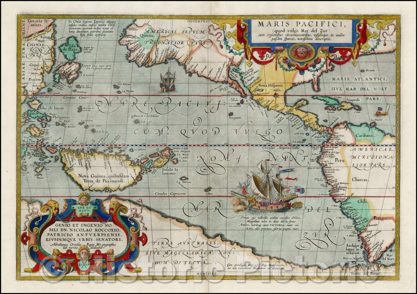 • .Historic Map - Maris Pacifici quod vulgo Mar del Zud/Ortelius' Maris Pacifici, the first printed Map of the Pacific Ocean, 1590, Abraham Ortelius - Vintage Wall Art