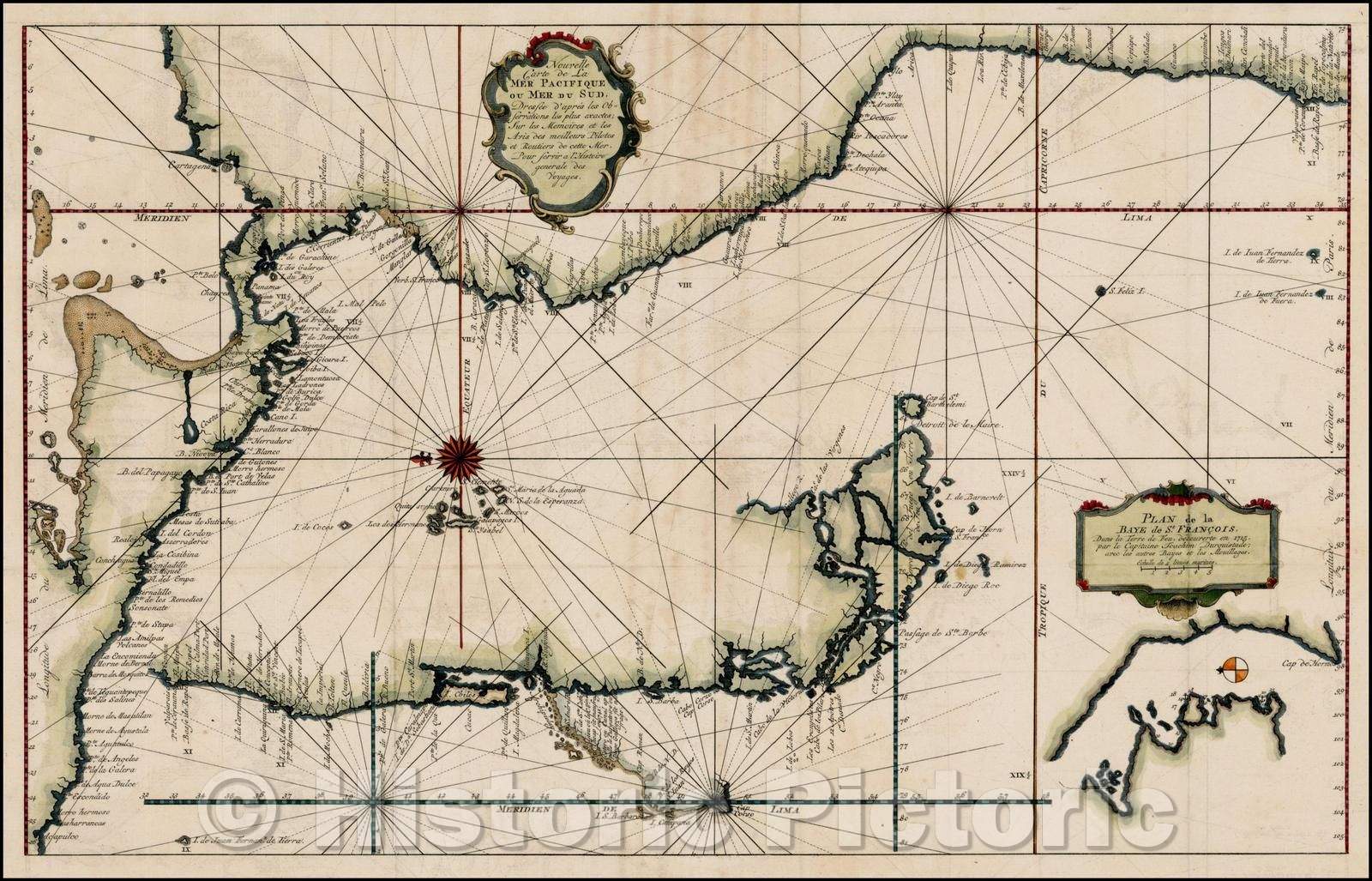 Historic Map - Nouvelle Carte de la Mer Pacifique ou Mer du Sud/New Map of the Pacific Ocean or South Wed, 1750, Jacques Nicolas Bellin - Vintage Wall Art