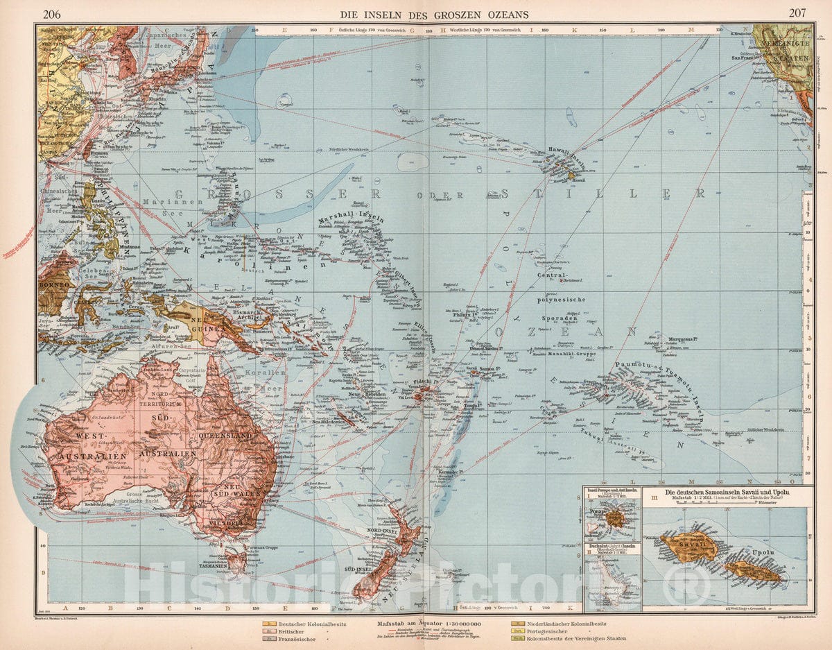 Historic Map : Pacific Ocean 1905 Die Inseln des Groszen Ozeans , Vintage Wall Art