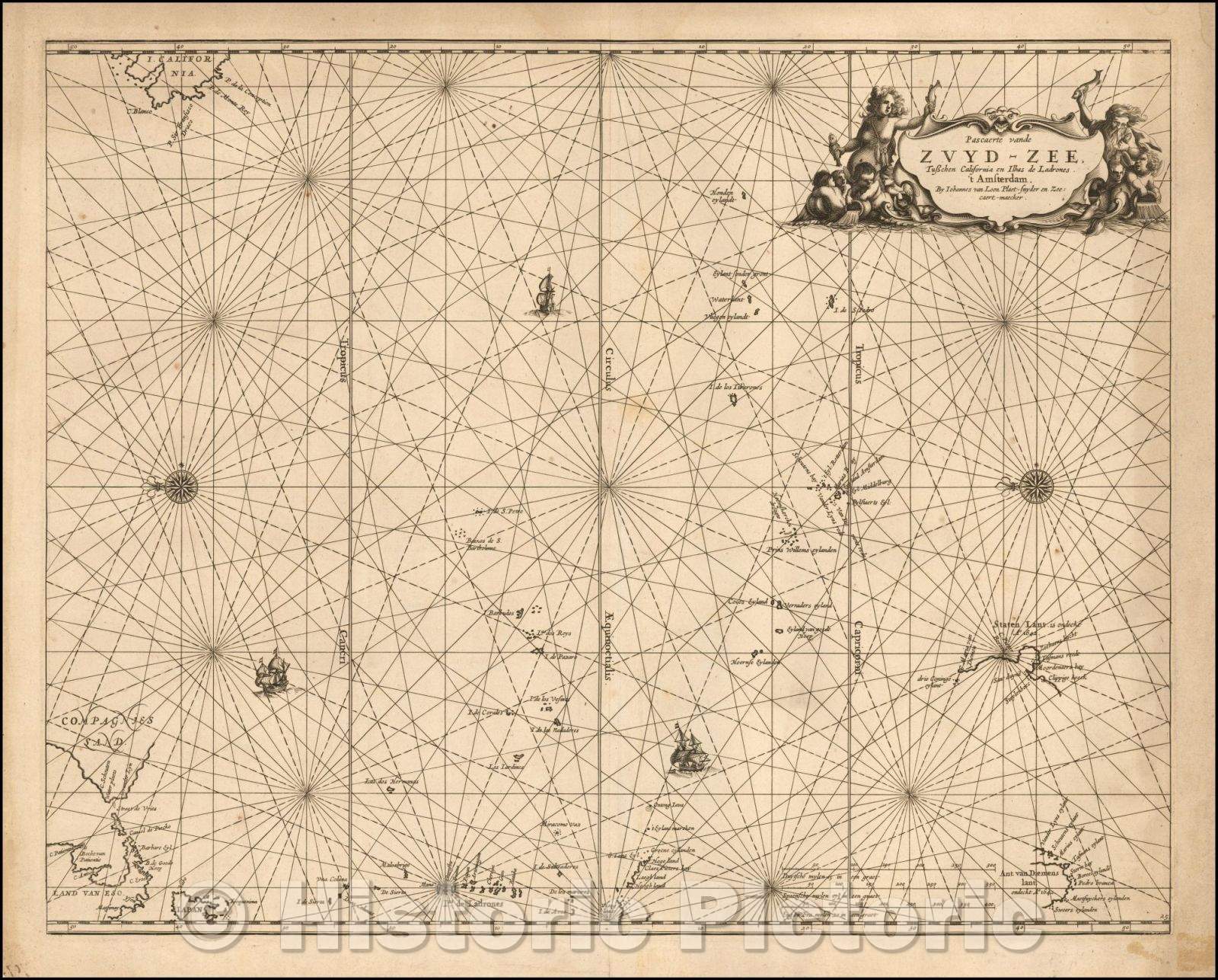 Historic Map - Pascaerte vande Zuyd-Zee, tusschen California, en Ilhas de Ladrones/Johannes Van Loons' Sea Chart of the Pacific Ocean, 1666 - Vintage Wall Art