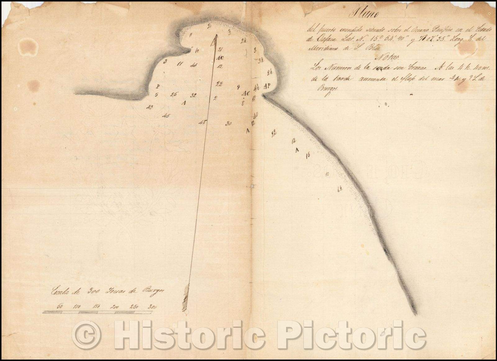 Historic Map - Plano del puerto de escondido situado sobre el Oceano Pacifico en el Estad, 1800 - Vintage Wall Art