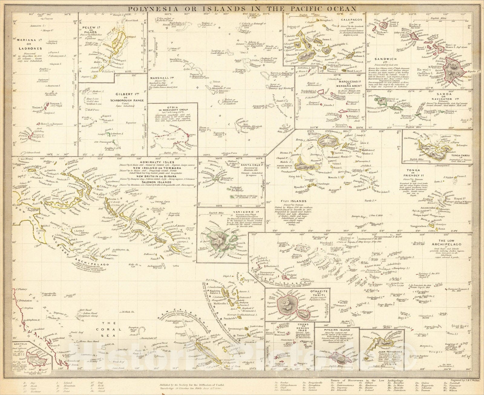 Historic Map : Polynesia, or Islands In the Pacific Ocean, 1860, SDUK, Vintage Wall Art