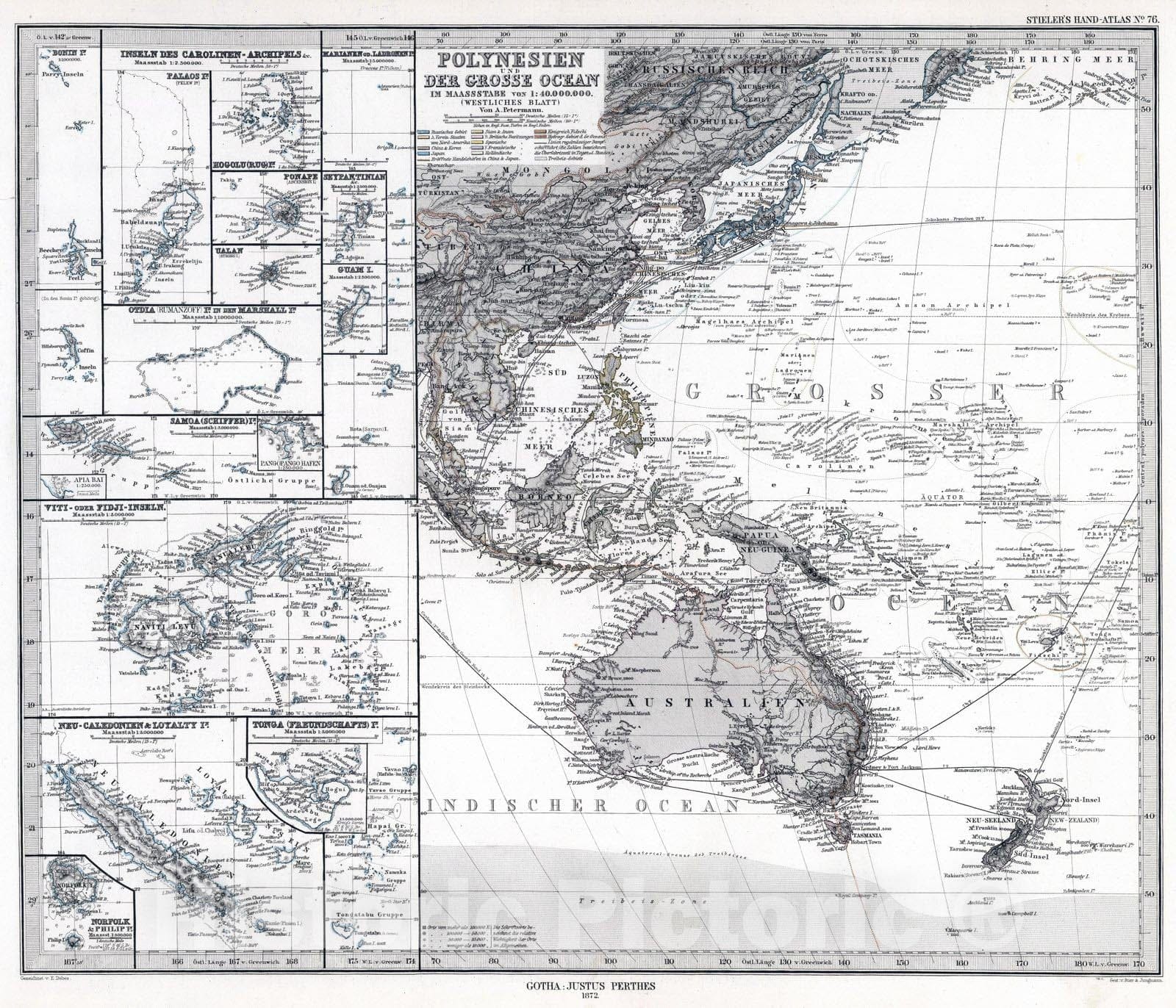 Historic Map : Polynesia, Pacific 1872 Polynesien und Der Grosse Ocean. (Western Polynesia and Pacific). , Vintage Wall Art