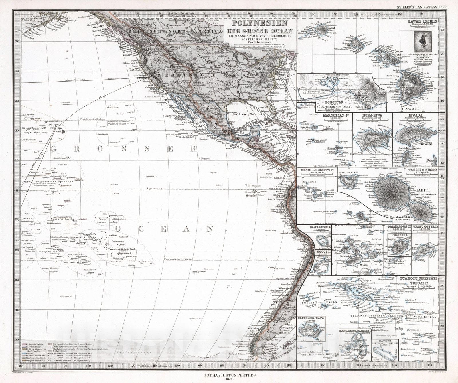 Historic Map : Polynesia, Pacific 1872 Polynesien und Der Grosse Ocean. (EasternPolynesia and Pacific). , Vintage Wall Art