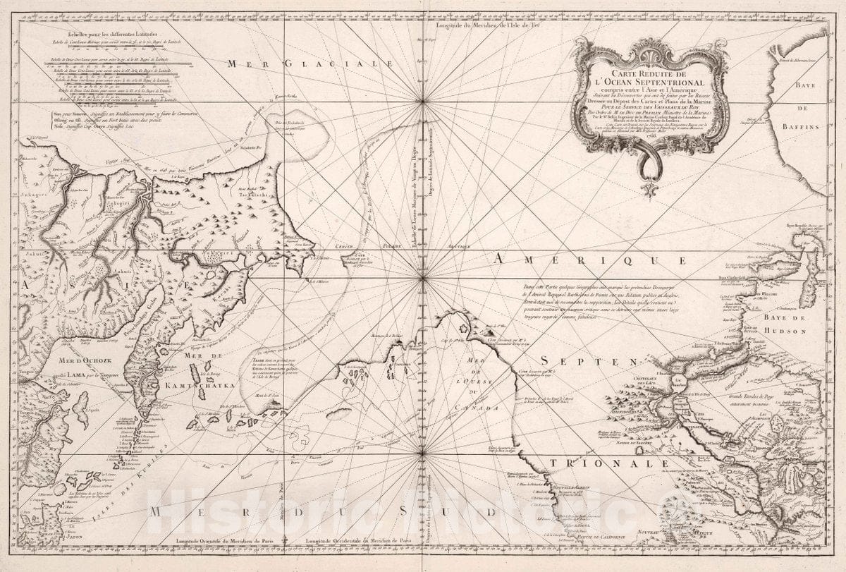 Russia, North Pacific, America Carte Reduite de l'Ocean Septentrionale, 1766 Chart , Vintage Wall Art