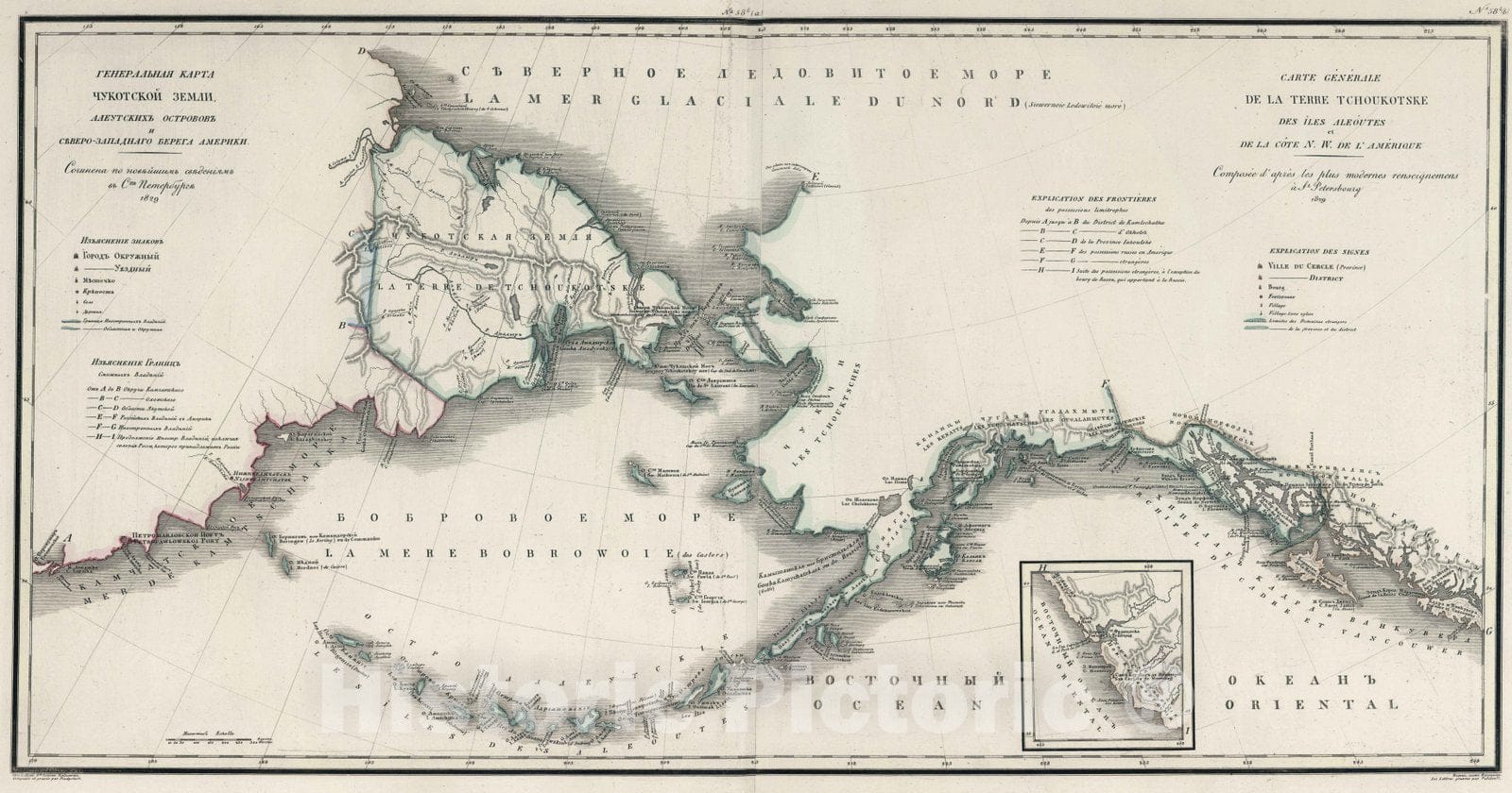 • Historic Wall Map : Russia, Alaska, North Pacific Ocean 1829 Chukotskoi Zemli, Aleutskikh ostrovov i severo-zapadnago berega Ameriki , Vintage Wall Art