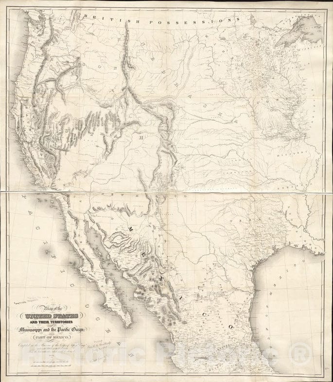 • .Historical Map, 1850 Map of The United States and Their Territories Between The Mississippi and The Pacific Ocean; and Part of Mexico, Vintage Wall Art