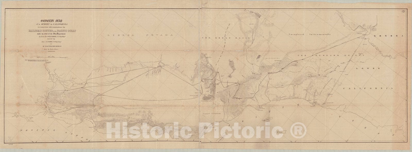 • .Map : California 1855 1, General map of a survey in California : in connection with examinations for railroad routes to the Pacific Ocean , Antique Vintage Reproduction