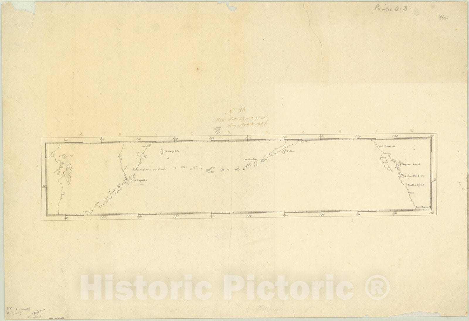 Map : Pacific Ocean 1776, N 16 from Lat 45 N to 57 N, Long 120 W to 135 E, Antique Vintage Reproduction