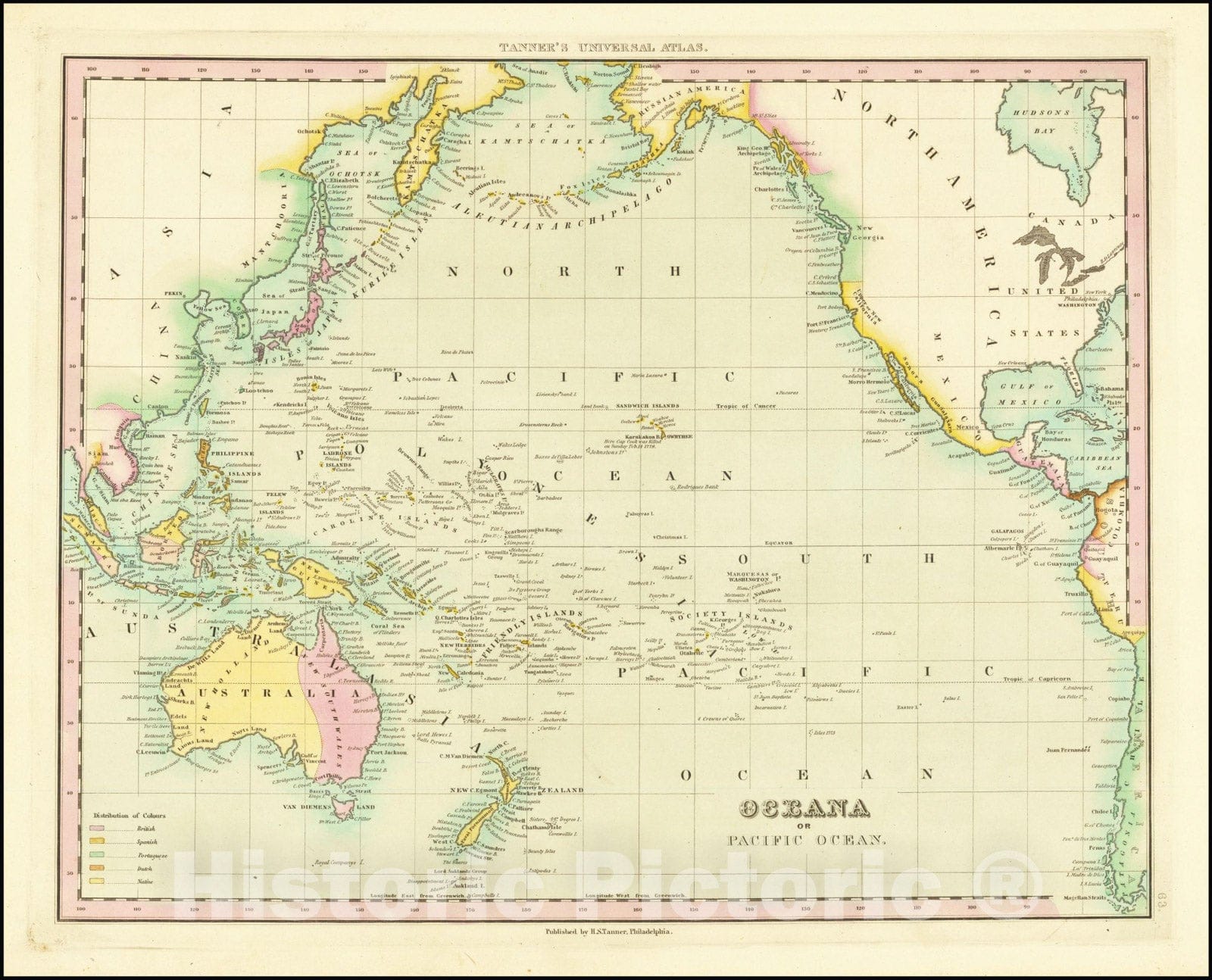 Historic Map : Oceana or Pacific Ocean, 1836 v1, Vintage Wall Art