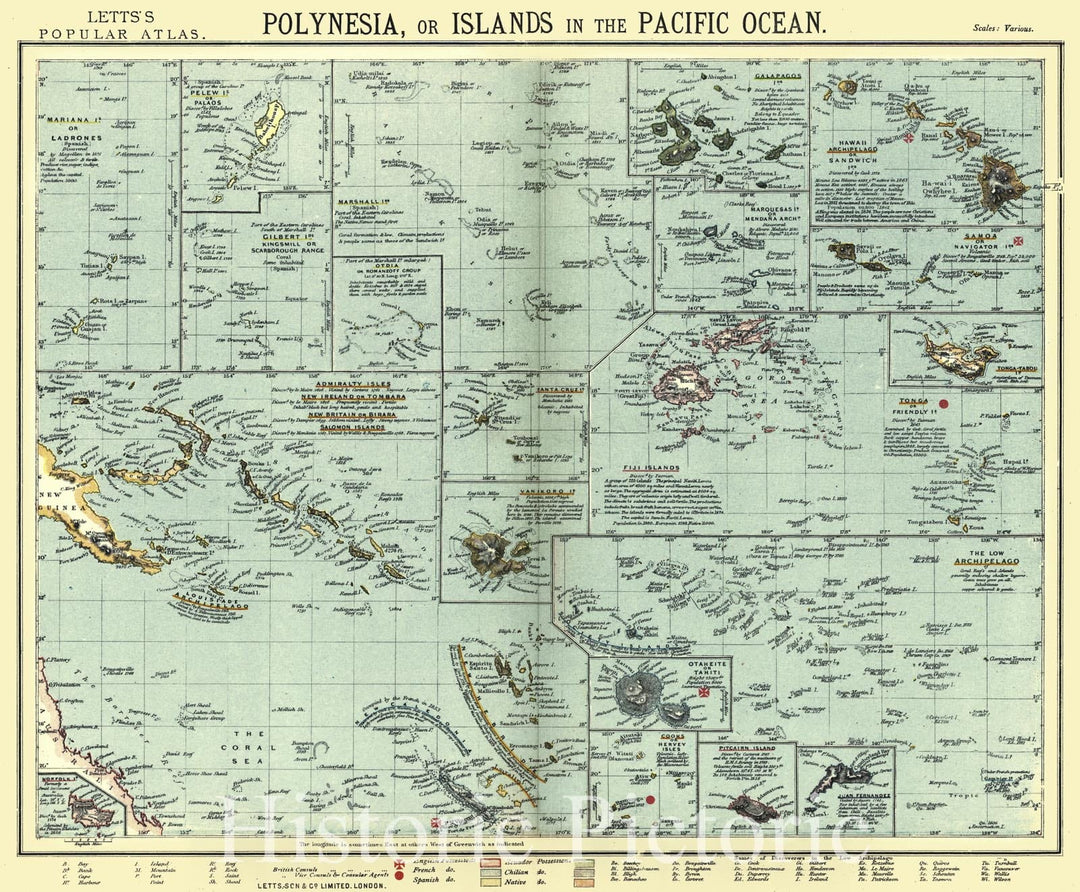 Historic Map : 1884 Polynesia, or Islands in the Pacific Ocean : Vintage Wall Art