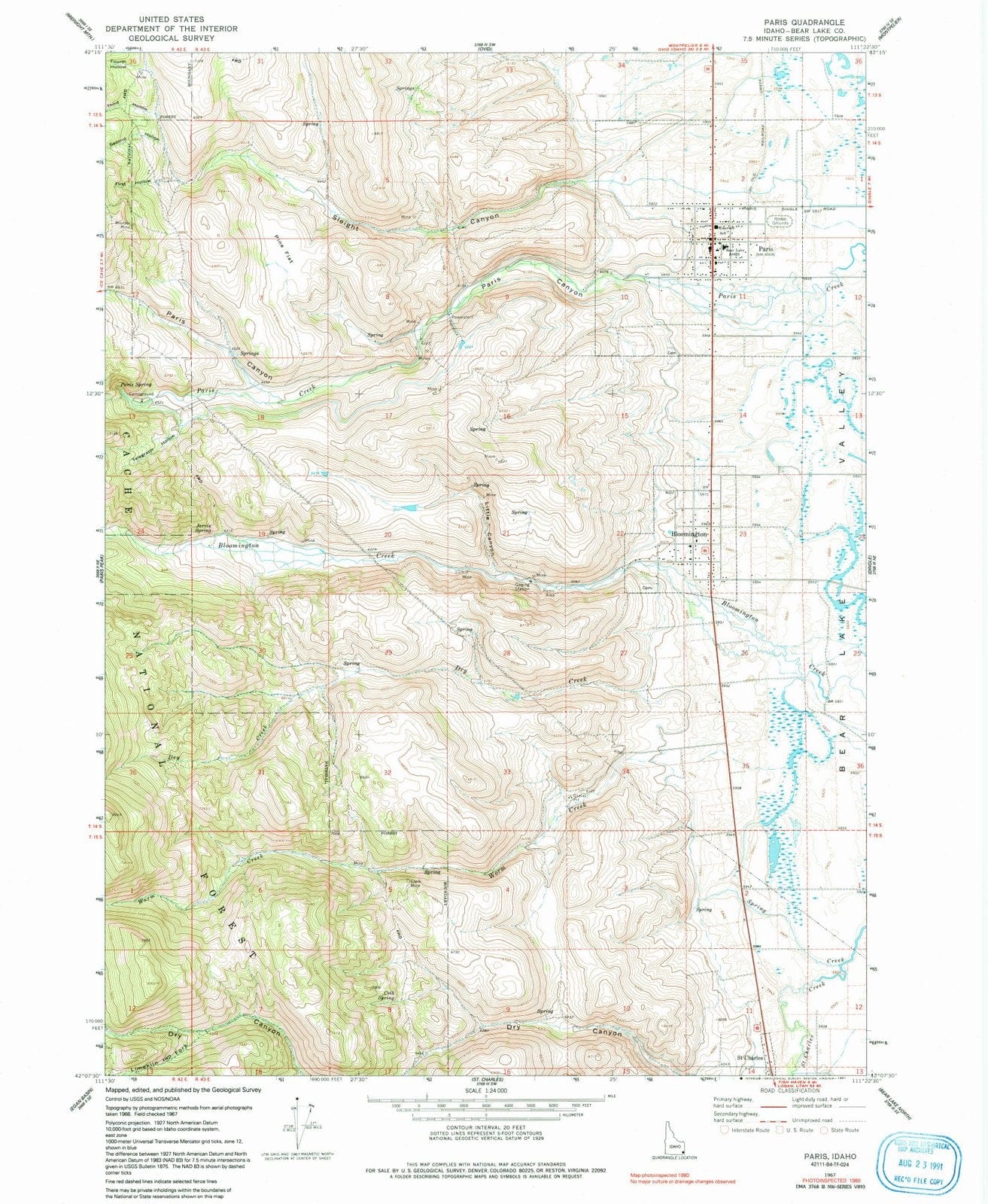 1967 Paris, ID - Idaho - USGS Topographic Map