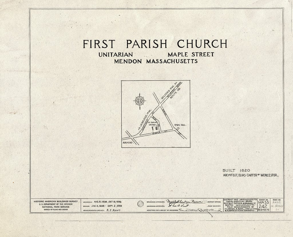 First Parish Church (Unitarian) & Carriage Shed, Maple & Elm Streets, Mendon, Worcester County, MA