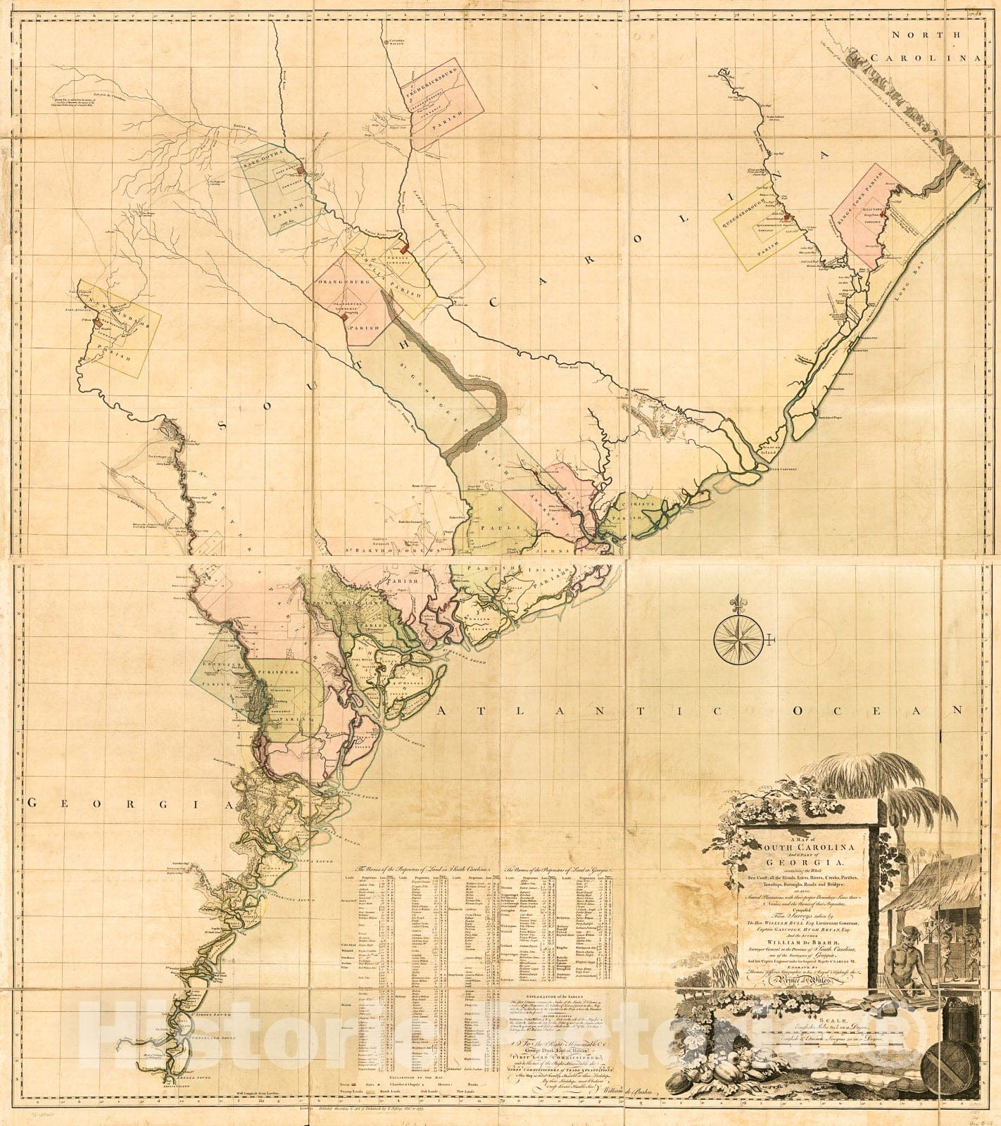 Historic 1757 Map - A map of South Carolina and a Part of Georgia. Containing The Whole sea-Coast; All The Islands, inlets, Rivers, Creeks and parishes