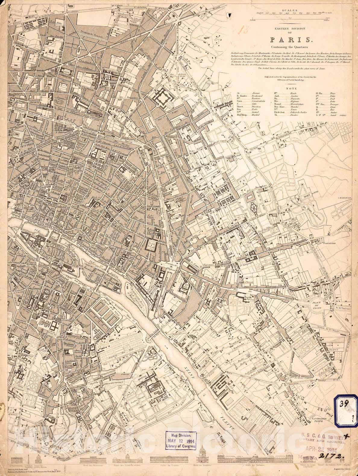 Historic 1833 Map - Eastern Division of Paris : containing The Quartiers