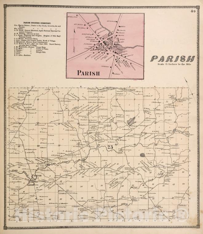 Historic 1867 Map - Parish Business Directory; Parish [Village]; Parish [Township] - Vintage Wall Art