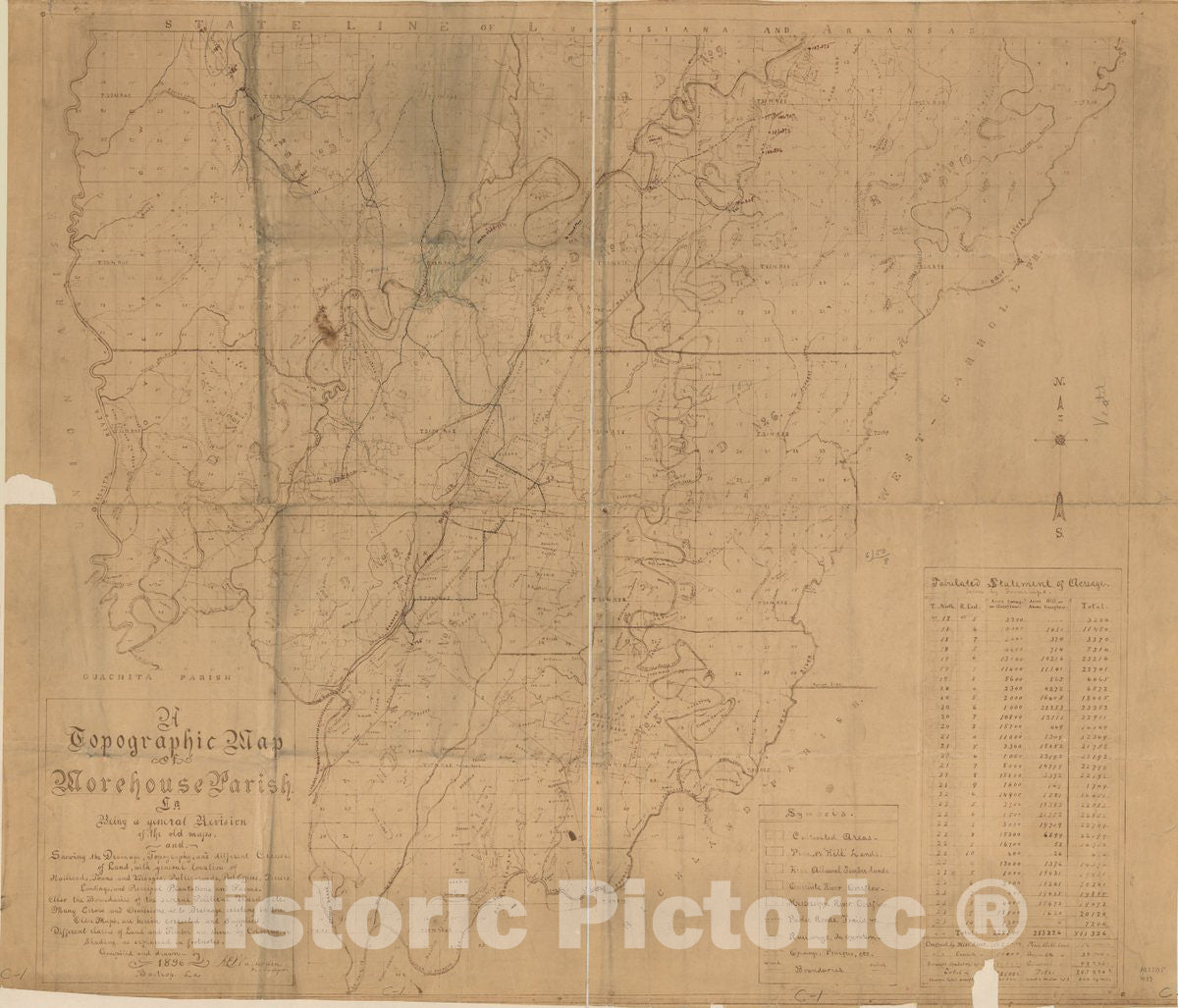 Historic 1896 Map - A Topographical map of Morehouse Parish, La. : Being a General Revision of Old maps