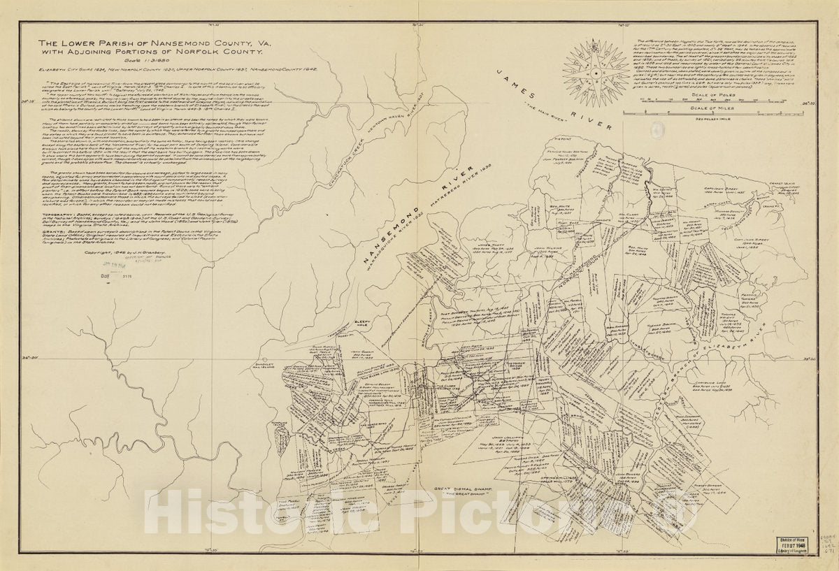 • .Historic 1948 Map - The Lower Parish of Nansemond County, Va. with adjoining portions of Norfolk County : Elizabeth City Shire 1634, New Norfolk County 1636, Upper Norfolk County 1637