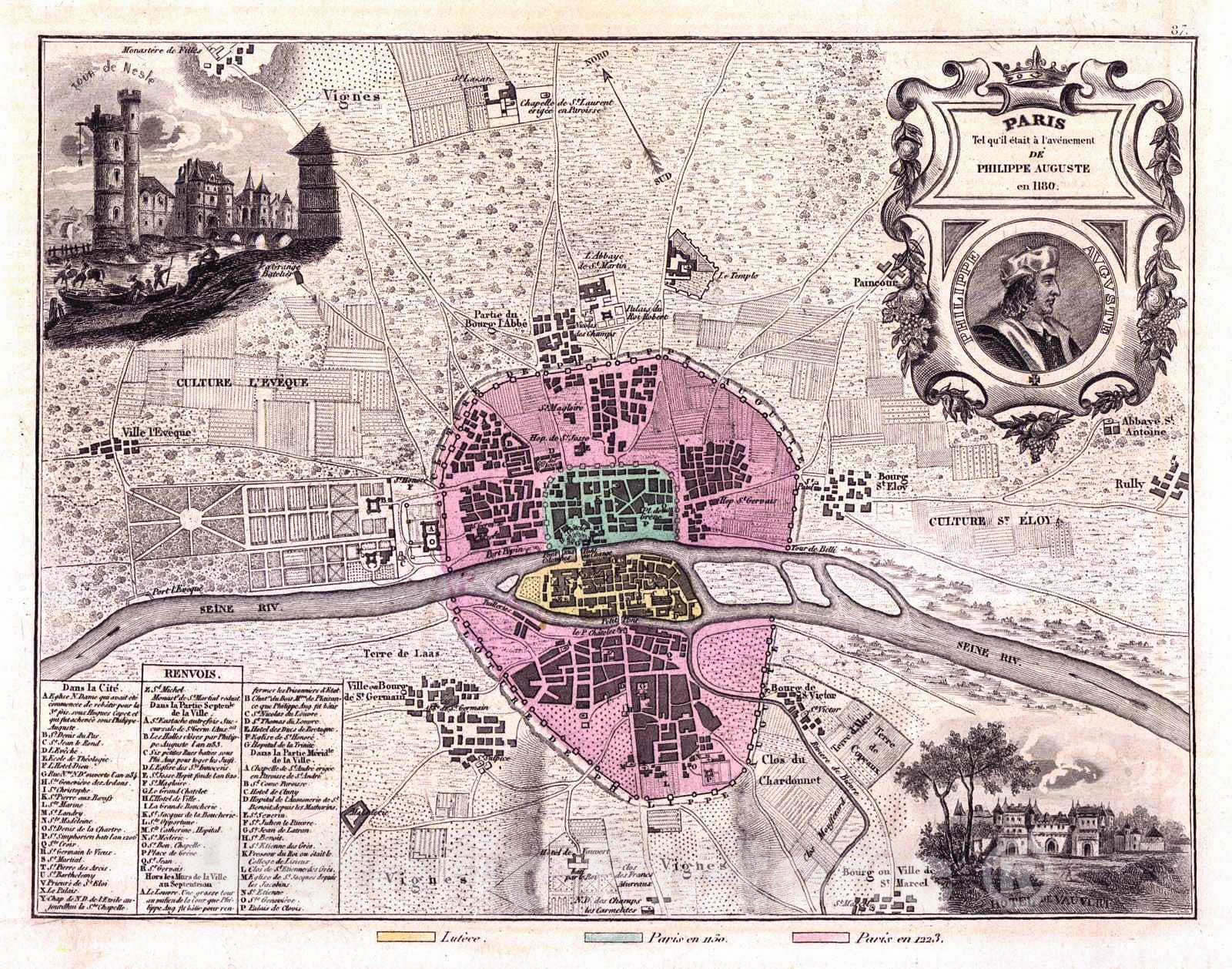 Historic Map : 1881 Paris Tel qu'il etait a l'avénement de Philippe Auguste en 1180 : Vintage Wall Art