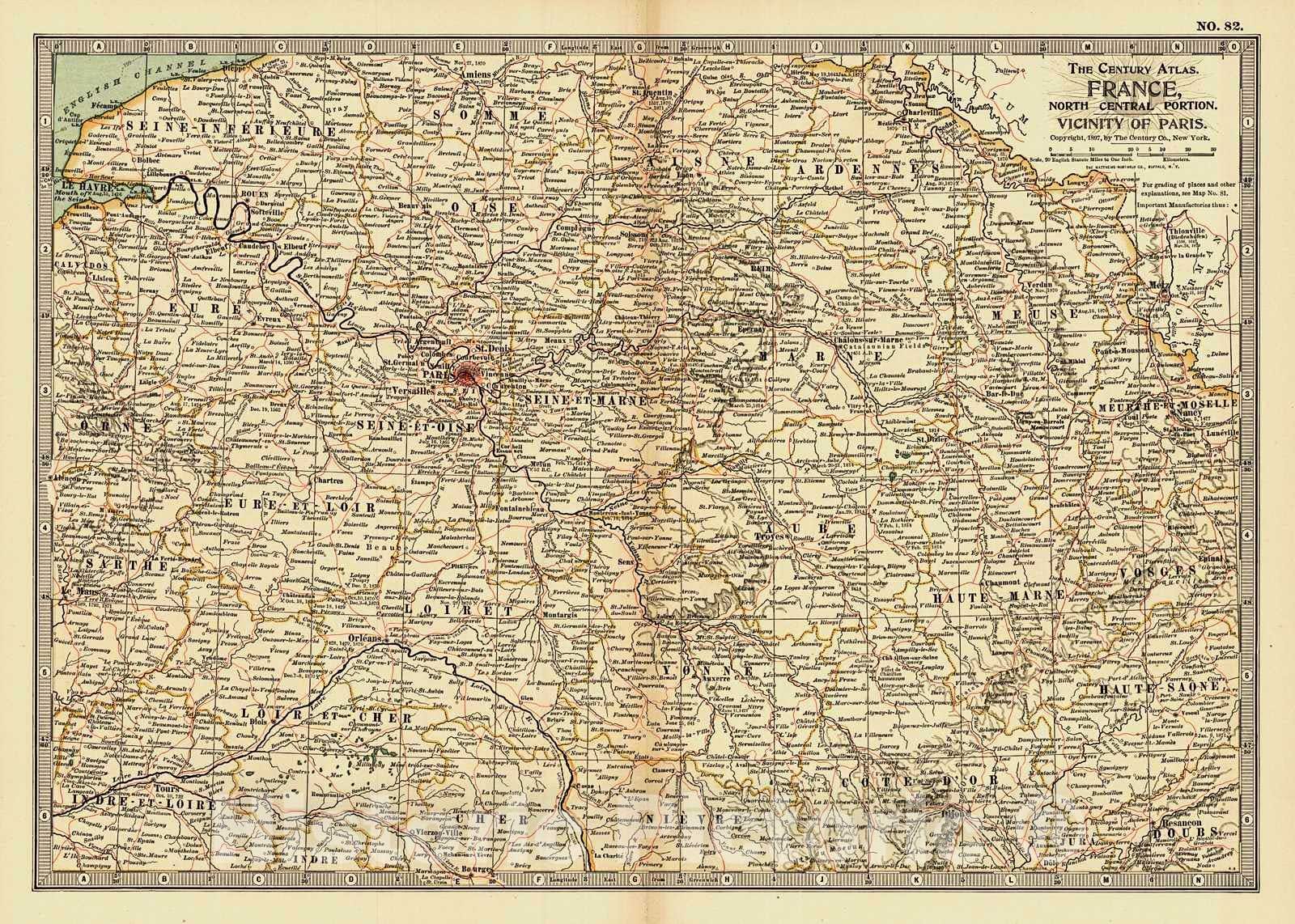Vintage Map | 1899 France- Northern Central Portion, Vicinity of Paris | Smith, Benjamin E.